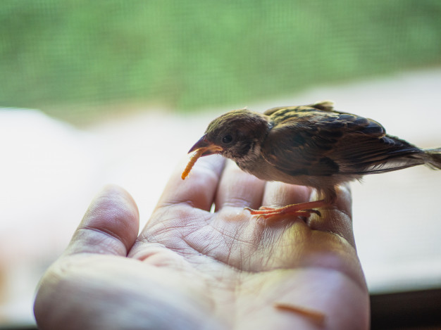 Un gorrión anida frente a la ventana de mamá. Ambos están casi
