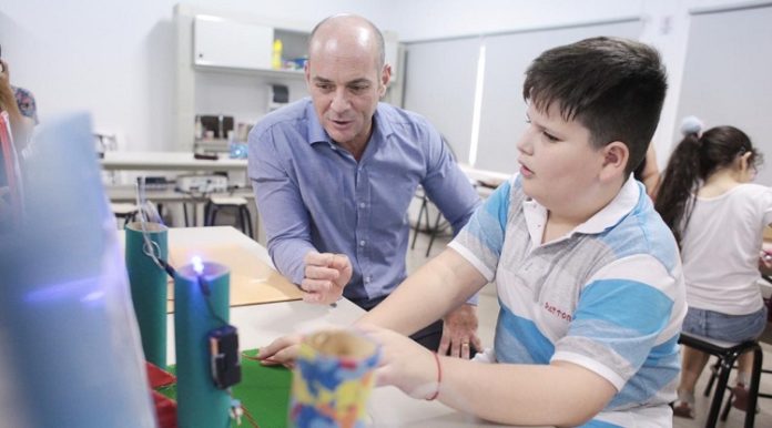 El ministro de Educación, Juan Pablo Lichtmajer, visitó el Centro de Innovación donde se desarrollan los talleres de Genios en Acción, una propuesta destinada a favorecer el acercamiento de las familias y chicos, a entornos innovadores y propuestas educativas-recreativas.