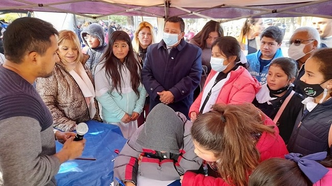 El intendente Darío Monteros, junto a la secretaria de Atención a Familias en Riesgo Social, Gladys Medina y a la directora de Educación del municipio Ana María Rengel recorrió la muestra, donde 8 estand estuvieron presentes, y los visitaron alumnos del 2do ciclo de escuelas de la Jurisdicción Municipal.