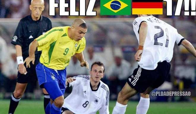 “A pedido… ¡Feliz año nuevo!”, escribió en Facebook el ídolo brasileño junto a una foto en la que, de la misma manera que hizo el mediocampista alemán, reemplazó números con banderas. En este caso, para recordar la final de Corea/Japón 2002, en la que Brasil le ganó 2-0 a Alemania. Entonces invirtió las banderas puso a Brasil primero (por el 2) Alemania luego (por el 0) y después el 17: “Feliz año novo 2017 Tony Kroos”