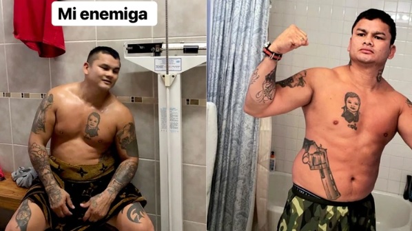 Día a día comparte por redes sociales su estricto entrenamiento que se compone de natación, caminatas y boxeo, al mismo tiempo que lo acompaña con una dieta equilibrada compuesta por verduras y carnes sin grasas.