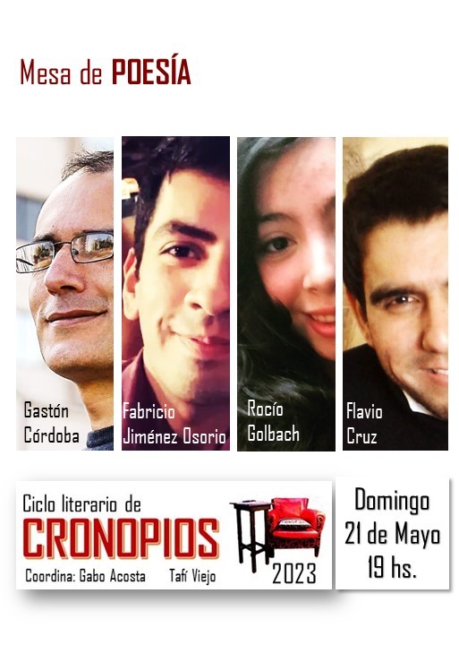 Según confirmó el organizador, la mesa de Poesía estará integrada por: Gastón Córdoba, Fabricio Jiménez Osorio, Rocío “Rochii” Golbach y Flavio Cruz, quien también aportará su talento musical a la velada.