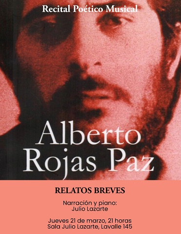 Letras de Fuego / Noticias. Hoy, jueves 21 de marzo, en coincidencia con el inicio del Ciclo de Otoño de los recitales poético musicales de la Camerata Lazarte, se presentará “Relatos breves y poemas”, de Alberto Rojas Paz, en la voz del Maestro Julio Lazarte.