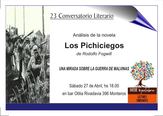 Letras de Fuego / Noticias. Hoy, desde las 18, en Monteros, el Conversatorio Sucede la Palabra tendrá su edición número 23, con el análisis y debate de la novela “Los pichiciegos”, de Rodolfo Fogwill, y su mirada sobre la guerra de Malvinas.