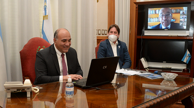 El gobernador y presidente pro témpore del ZICOSUR, Juan Manzur, participó del seminario virtual “Corredores Bioceánicos Sudamericanos”, organizado por el Parlamento del Mercosur. Lo hizo por videoconferencia, desde su despacho, en Casa de Gobierno.