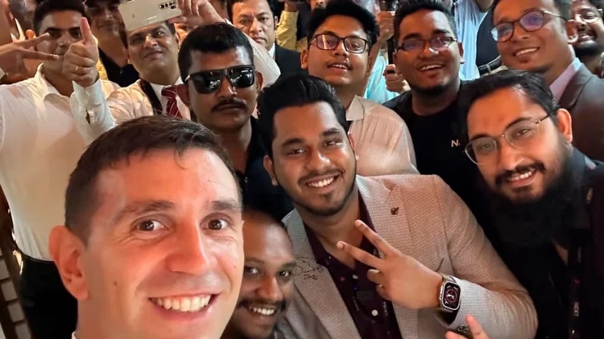 Emiliano Martínez aterrizó en la mañana de este lunes y una marea de seguridad lo estaba esperando para guiarlo en su visita. El arquero publicó en sus redes sociales fotos de lo que fue el paseo y la reunión que mantuvo con Sheikh Hasina, primera ministra. “Tuve un viaje tan extraordinario a Bangladesh comprometido con NEXT Ventures y FundedNext. La gente de aquí, con su amor, cuidado y hospitalidad sin igual, realmente me han derretido el corazón. Anticipo con ansias mi regreso a este hermoso país en un futuro cercano”, redactó el futbolista del Aston Villa.