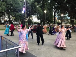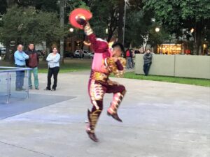 Una vez concluida la lectura, se dio paso a la danza. La Tiktoker Mariminichillo hizo bailar ritmos latinos a los escritores y al público presente, lo que generó risas y diversión. Varios de los presentes demostraron sus habilidades.
