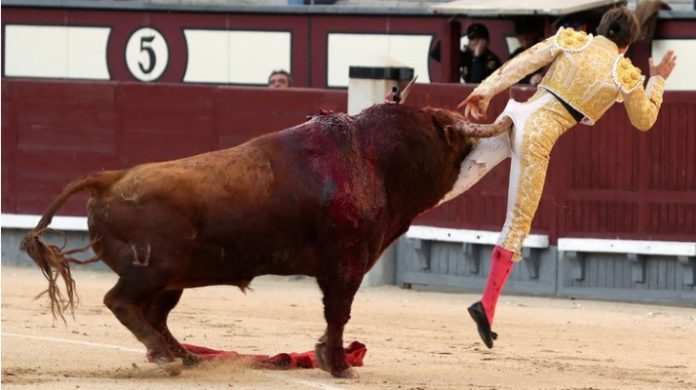 Fue un momento dramático. El joven torero francés Juan Leal, de 26 años, dejó boquiabiertos a las cerca de 16.000 personas que presenciaban las corridas de toros este sábado en Las Ventas, Madrid, desde las tribunas. En medio de un combate brutal con el toro, el animal lo levantó por el aire de una cornada, lo que le generó una lesión de 25 centímetros en la zona perianal.