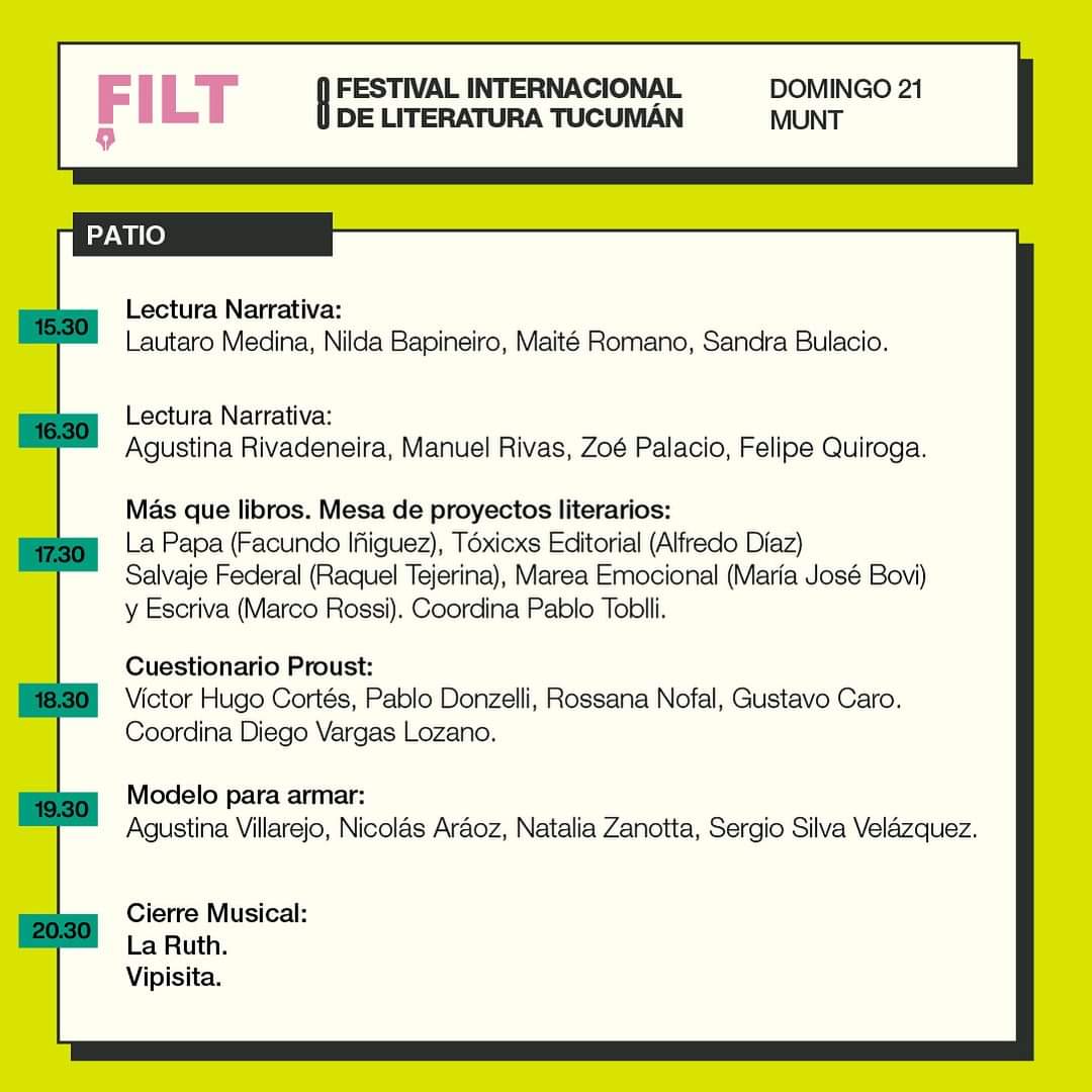 Letras de Fuego / Noticias. Con las presencias estelares de Reynaldo Sietecase, Michel Nieva y Selva Almada, entre otros grandes escritores, desde este viernes y hasta el domingo inclusive, se desarrollará el VIII Festival Internacional de Literatura Tucumán (FILT).
