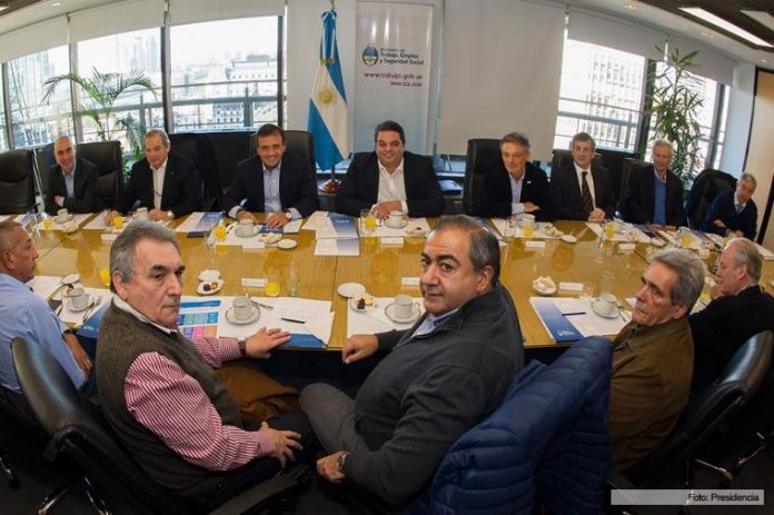 Además de los ministros, el vicejefe de Gabinete, Mario Quintana, los dirigentes Acuña, Daer, Schmid y Frutos, participaron del encuentro celebrado en el piso 18 de la cartera laboral ubicada en Leandro N. Alema 650,