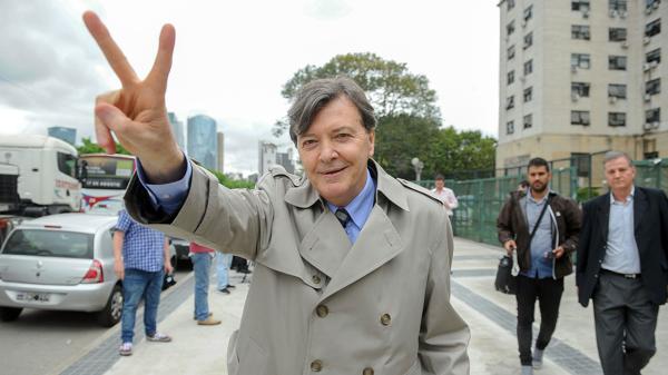 César Milani y un gesto optimista a la salida de Comodoro Py (Télam)