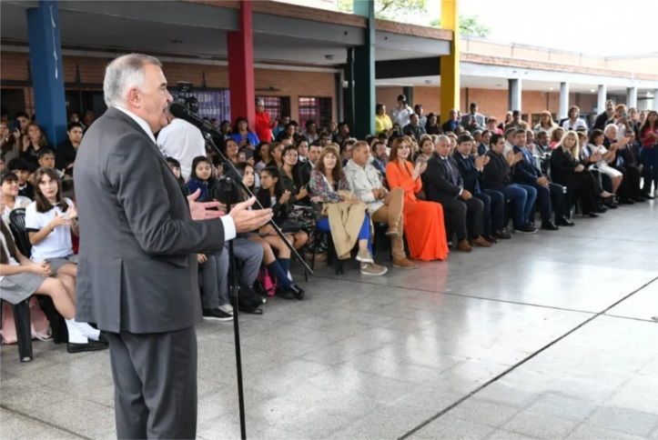 Desde las 10.00, el gobernador Osvaldo jaldo ofició de presentador oficial de los Juegos Estudiantiles Tucumán 2024, en la escuela secundaria “El Corte”, de Alderetes.
