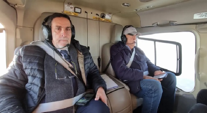 El Primer Mandatario está acompañado por el ministro de Salud, Luis Medina Ruiz y el titular de Defensa Civil provincial, Fernando Torres.