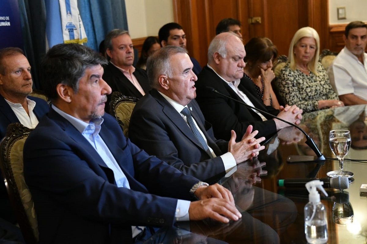 Durante una conferencia de prensa brindada en la Casa de Gobierno, el gobernador, Osvaldo Jaldo, se refirió a la situación de la provincia en relación al paro nacional anunciado por la Unión Tranviarios Automotor (UTA) por cuestiones salariales y expresó que el gobierno tucumano hace importantes esfuerzos para que el servicio público de transporte de pasajeros no se detenga en Tucumán. El mandatario fue acompañado por el vicegobernador, Miguel Acevedo y funcionarios del Gabinete provincial.