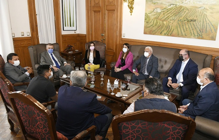 El gobernador interino, Osvaldo Jaldo, acompañado por Marcelo Caponio, recibió, este viernes, al intendente de Banda del Río Salí, Darío Monteros, la diputada nacional Gladys Medina, el legislador Gonzalo Monteros, el presidente del Concejo Deliberante bandeño, Ramón Radin y los concejales Miryan Soraire, Julio Rocha, Jorge Flores, Mario Aguirre.