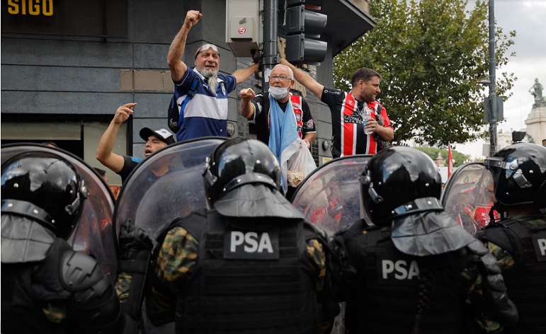 Ayer, la manifestación que suelen hacer los jubilados todos los miércoles terminó con enfrentamientos con la policía, destrozos, heridos y 124 detenidos -de los cuales la mayoría ya fueron liberados-. Un fotoperiodista recibió un impacto en la cabeza y lucha por su vida en el hospital Ramos Mejía. A diferencia de otras manifestaciones, esta vez se sumaron barras de clubes fútbol y militantes políticos que arremetieron contra la Policía.