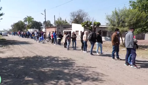 Largas filas para cobrar esta ayuda, que para muchos, podría enmarcarse en un acto de clientelismo ante la cercanía de las PASO. Hasta el momento la Justicia no se expidió al respecto.