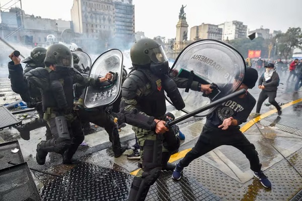 En las calles, la violencia se hizo presente durante toda la tarde. Los manifestantes enfrentaron a las fuerzas de seguridad con piedras, bombas molotov y hasta granadas. Además, causaron destrozos e incendiaron autos. A las 20, el total de detenidos era de 27 personas, de los cuales 18 fueron atrapados por la Policía de la Ciudad y 9 por la Policía Federal Argentina.