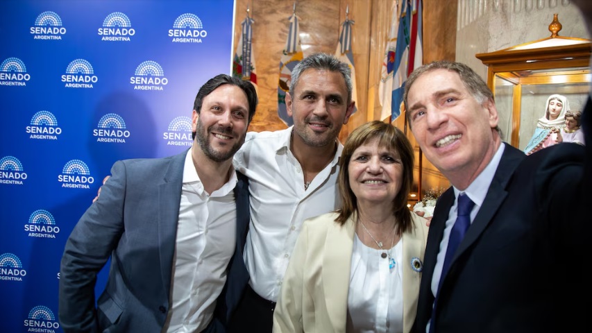 Al igual que en la sesión en Diputados, un gran porcentaje de la mesa política estuvo en el recinto escoltando a la exministra a pedido de la misma. Pasadas las 15, Bullrich recibió en su nuevo despacho al ministro del Interior, Diego Santilli y a los primos Martín Menem, titular de la Cámara de Diputados, y Eduardo “Lule” Menem, el armador de La Libertad Avanza (LLA). También estuvo presente el secretario de Asuntos Estratégicos de la Jefatura de Gabinete, Ignacio Devitt.
