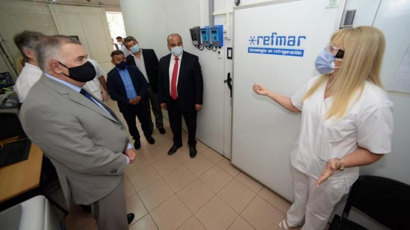 Para supervisar el inicio de la distribución de las dosis en los 13 nodos donde será colocada, el gobernador, Juan Manzur, junto con el vicegobernador, Osvaldo Jaldo, y la ministra de Salud Pública, Rossana Chahla, visitaron el Depósito Central del Siprosa.