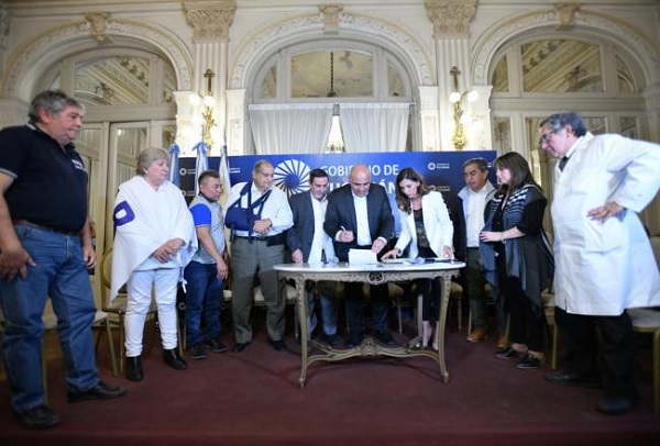 En tanto que Vargas Aignasse explicó: “Hoy firmamos, con cinco gremios de la salud, un 45 por ciento de incremento, que en la boleta de la sanidad va directamente al básico. Este 45 por ciento va a pagarse en dos partes, el 21 por ciento en agosto, y el 24 por ciento en octubre, y va a impactar en cada uno de los ítems de la boleta. Esto nos lleva -para graficar- que en un nivel inicial, el agente que recién ingresa, con cero años de antigüedad, en agosto va a percibir de bolsillo 240 mil pesos y en octubre se elevará a 296 mil pesos. También se elevaron el monto de las asignaciones familiares a un 56 por ciento hasta el mes de octubre. Este es un acuerdo por tres meses”.
