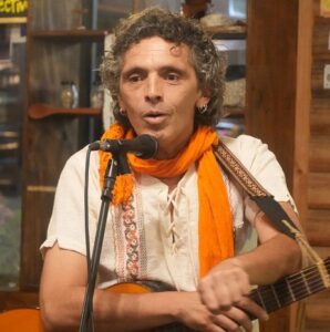 Alfredo Gilbert Flores es actor, director teatral, cantautor, profesor de Matemáticas. En el campo de la narración oral despliega su arte con el acompañamiento de su guitarra. Sus cuentos cantados remiten a los juglares medievales, que recreaban escenas con rimas y canciones.
