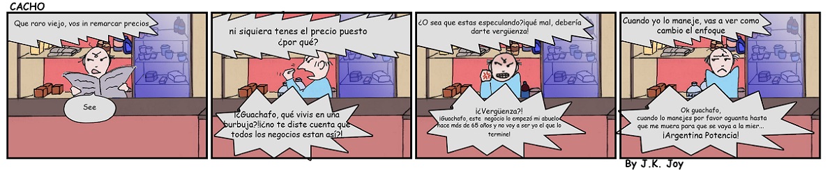 Actualidad El guachafo ya quiere jubilar a Cacho 4 septiembre, 2023 Compartir en Facebook Compartir en Twitter 🔊 Escuchar la entrada El personaje principal de la tira cómica de Diario Cuarto Poder , Cacho, Creado por J.K. Joy , se preocupa por el futuro de su negocio. Comments Comentarios