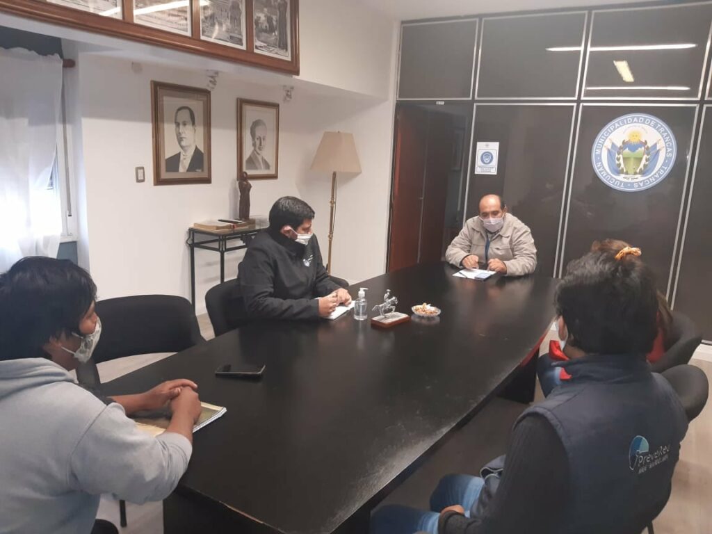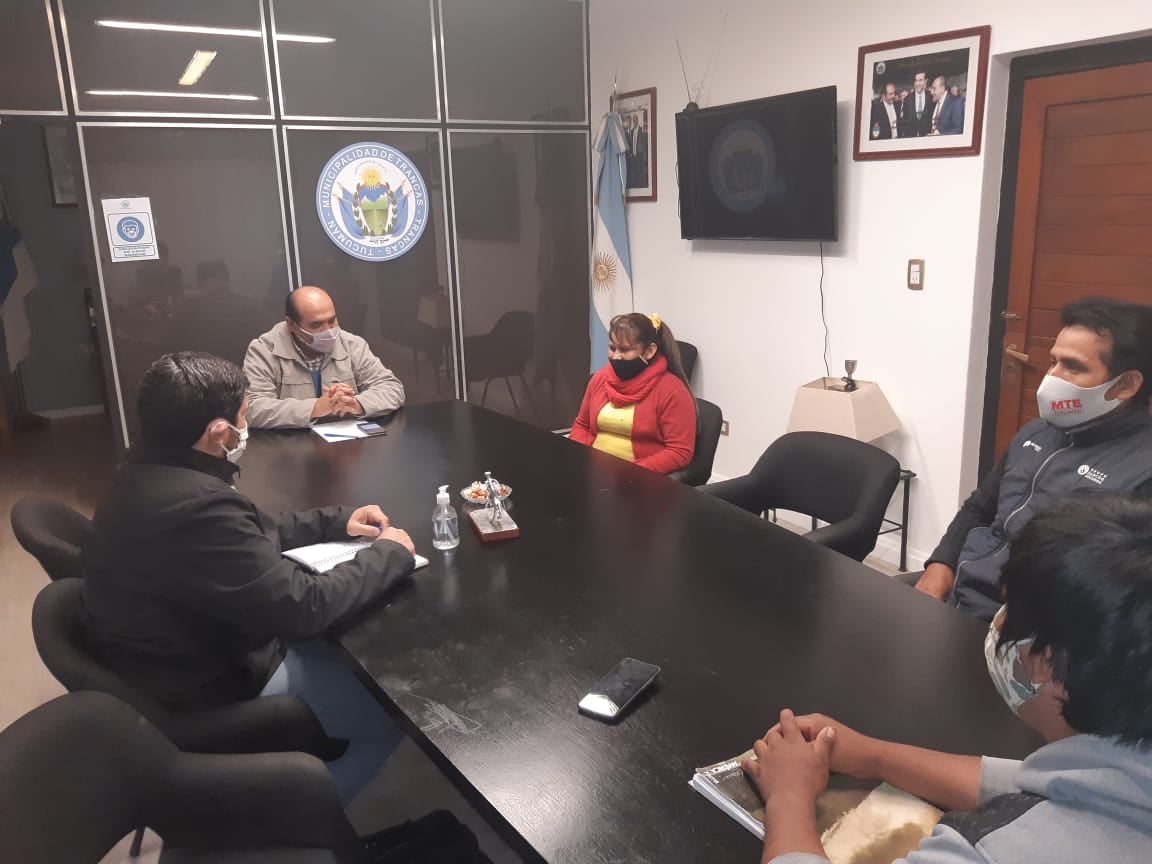 En la jornada de hoy, el intendente Roberto Moreno mantuvo una reunión con Michel Mamani Chávez, encargado de proyecto y gestión de organización MTE zona Trancas, Sofía Yurquina responsable del merendero Blanca Nieve y sus Enanitos, ubicado en la zona de la Colonia, Alfonso Mamani Cayo, referente del MTE de la Provincia de Tucumán y Juan José Jorrat, coordinador de la zona norte de la Secretaría de Agricultura Familiar, Campesina e Indígena.