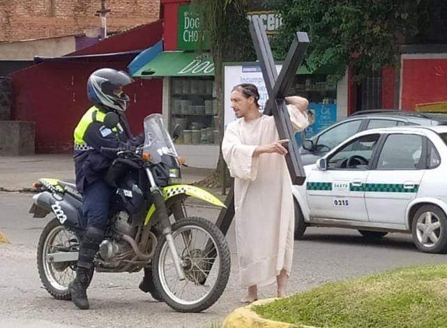 El Viernes Santo del año pasado fue noticia por realizar un solitario Via Crucis desde la rotonda del pie del cerro hasta el Cristo, a lo largo de toda la ciudad de Yerba Buena. Lo hizo como un acto de fe y para señalar que “Jesús estaba al lado de la gente”.