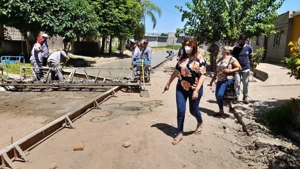 En la mañana de este miércoles la intendente Sandra Figueroa visitó el barrio Santa Rosa, en el inicio del hormigonado de la calle Tomás Pintos, la que comienza en calle Perú y va hasta la Eva Perón, haciendo un total de 3 cuadras.