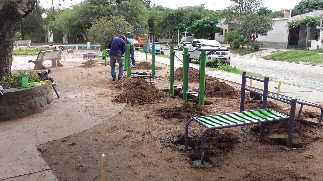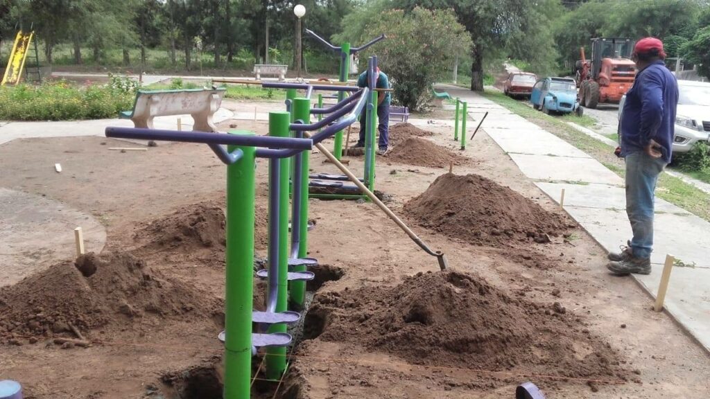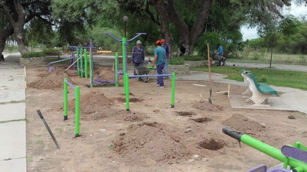 En el marco del programa de Promoción y Recuperación de Espacios Verdes, el municipio de Trancas, a través del Dpto. de Medio Ambiente y la Secretaria de Obras y Servicios Público, instalaron en la jornada de hoy los juegos correspondiente a la nueva plaza saludable en barrio Alto el Milagro.