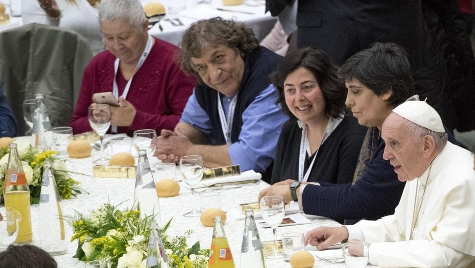 Jorge Bergoglio almorzó con 1.500 pobres en una sala del Vaticano, mientras que otros 2.500 fueron repartidos en los comedores de las diferentes instituciones pontificias.