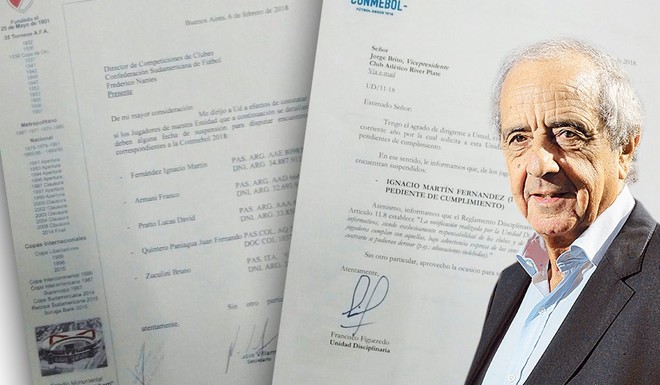 Horas antes del partido de vuelta entre Independiente y Santos en Brasil, la Conmebol finalmente le dio el ganado duelo de ida el Rojo, por 3-0, por la mala inclusión de Carlos Sánchez, quien debía una fecha de suspensión. En ese contexto quedó claro que, a pesar de haber incurrido en una falta similar, River se salvó por la carta que mandó a principio de año, preguntando la situación reglamentaria de sus jugadores: en la respuesta oficial no figuraba suspendido Zuculini.