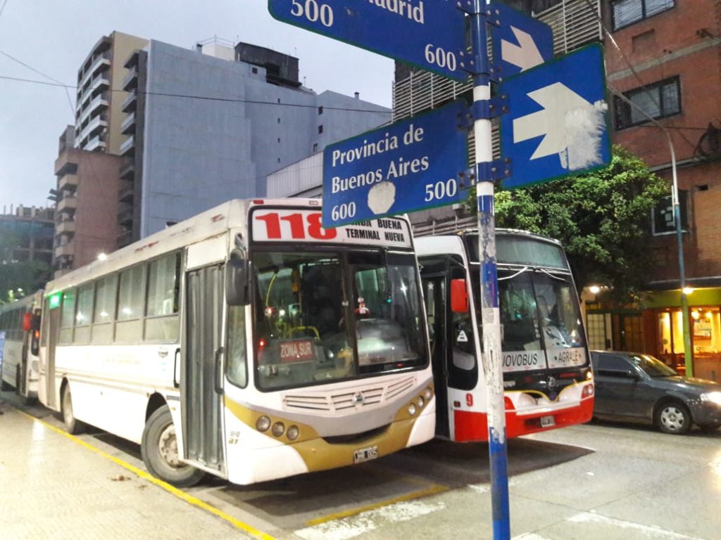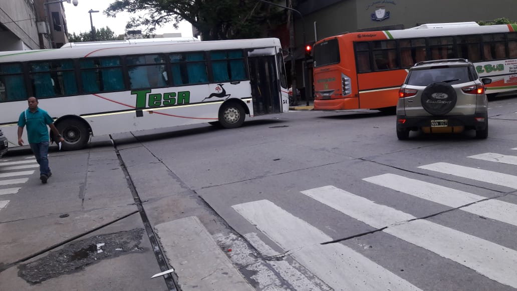 El transito de barrio Sur se transformó en una verdadera pesadilla debido a que choferes de colectivos dejaron sus unidades mal estacionadas y hasta en doble fila en la zona