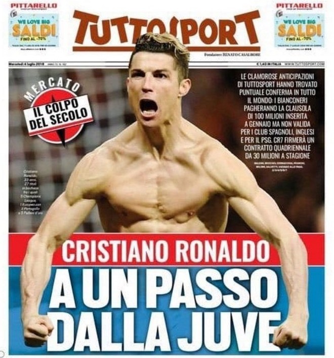 Parece que el futuro de Cristiano Ronaldo está cada vez más lejos del Real Madrid y más cerca de la Juventus. “Cristiano, a un paso de la Juve”, anuncia la tapa del diario Tuttosport, de Italia, que saldrá este miércoles a la calle.