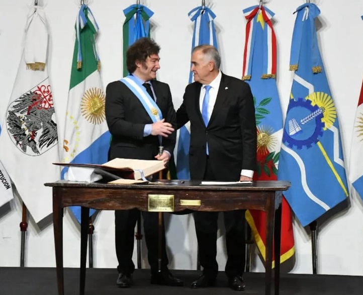 El presidente Javier Milei firmó anoche junto al gobernador tucumano Osvaldo Jaldo y otros 17 gobernadores el Pacto de Mayo con el objetivo de “reconstituir las Bases de la Argentina y reinsertar a nuestro pueblo en la senda del desarrollo y la prosperidad”, según reza el compromiso escrito. Además lo harán los expresidentes Mauricio Macri (2015-2019) y Adolfo Rodriguez Saá (2001)
