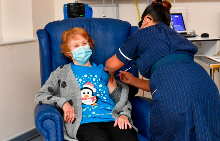Una mujer de 90 fue la primera en recibir la vacuna contra el covid-19, informaron este martes los medios.