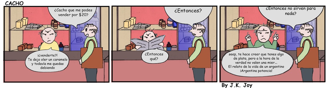 Actualidad El valor del dinero 21 octubre, 2024 Compartir en Facebook Compartir en Twitter 🔊 Escuchar la entrada El personaje principal de la tira cómica de Diario Cuarto Poder , Cacho, Creado por J.K. Joy ,le dice a su amigo que el dinero que trajo no alcanza para nada Comments Comentarios