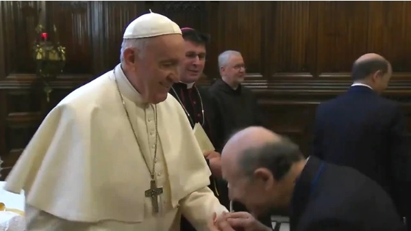 Gisotti aprovechó cuando vio a Francisco para comentarle la curiosidad que había suscitado este gesto y el papa le explicó que cuando hay un grupo de gente muy numeroso al que tiene que saludar en un mismo lugar prefiere por precaución que no besen el anillo papal para evitar la difusión de gérmenes.