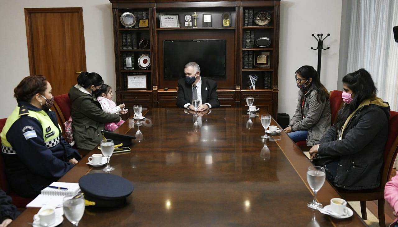 El Vicegobernador, CPN Osvaldo Jaldo, recibió esta mañana a los familiares del Cabo Roberto Lucena, el policía que perdió la vida recientemente cumpliendo con su deber. Participaron de la reunión Débora Díaz (esposa), Vanesa Sánchez (ex esposa), Sofía Lucena (hija) y Patricia Chaile (cuñada). También estuvieron presentes la Subcomisaria Marcela Robles (Sociales Dpto Personal de la Policía) y el Comisario Inspector Julio Alderete (Jefe de la Unidad Trámite Previsional).