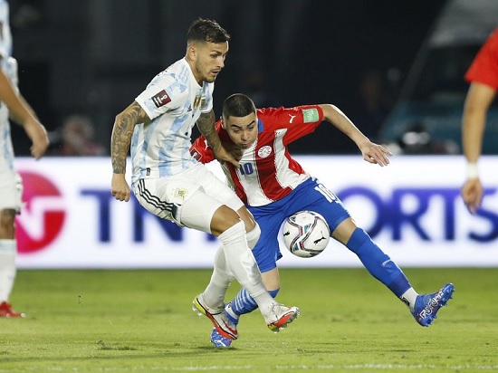 Paraguay, en tanto, sólo inquietó con un tiro de Arzamendia de media distancia, que Dibu Martínez envió al córner a los 3 minutos de acción.