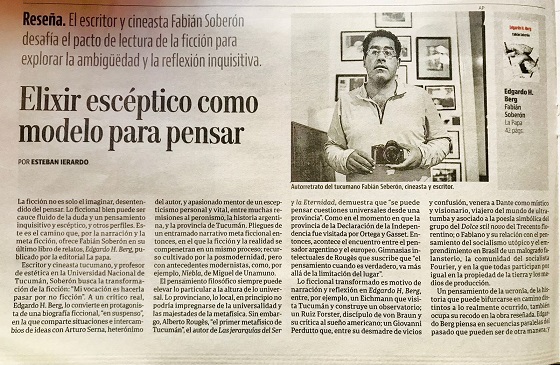 La nota en la Revista Ñ sobre el libro “Edgardo H. Berg”, de Fabián Soberón parece ser la frutilla de un postre que aún no se sirve, porque el libro del tucumano tiene muchas más satisfacciones para dar, no solo a su autor sino también a los lectores.