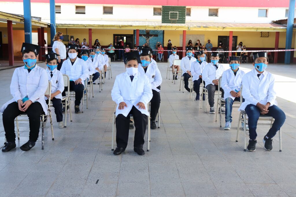 La institución educativa esta ubicada en Banda del Río Sali y su intendente no quiso estar ausente en este momento tan conmovedor para esos alumnos que terminan un ciclo en una año más que particular y se reencuentran con sus compañeros de todos esos años.