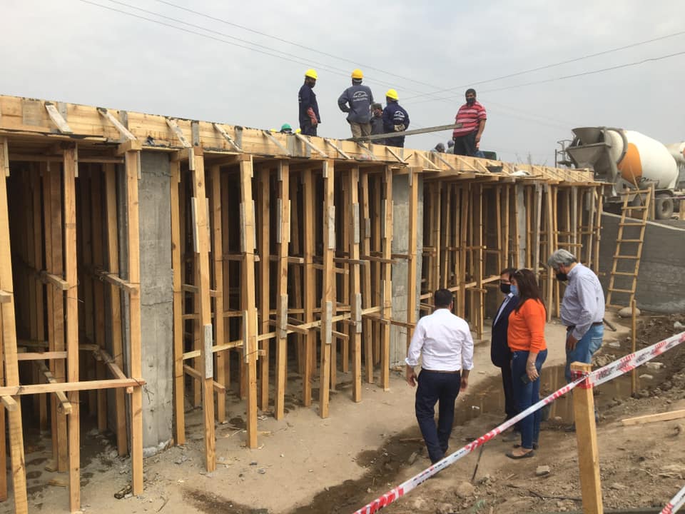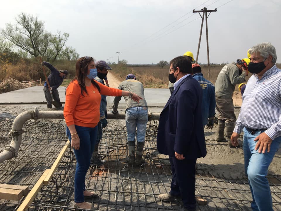 La Sra. Intendente Sandra Figueroa recorrió la importante obra de Los Guayacanes, el Puente con dimensiones de 18 mts de largo por 10 mts de ancho con 4 secciones libres y 3 mts de altura, hoy se realizó el llenado de la loza de tránsito.