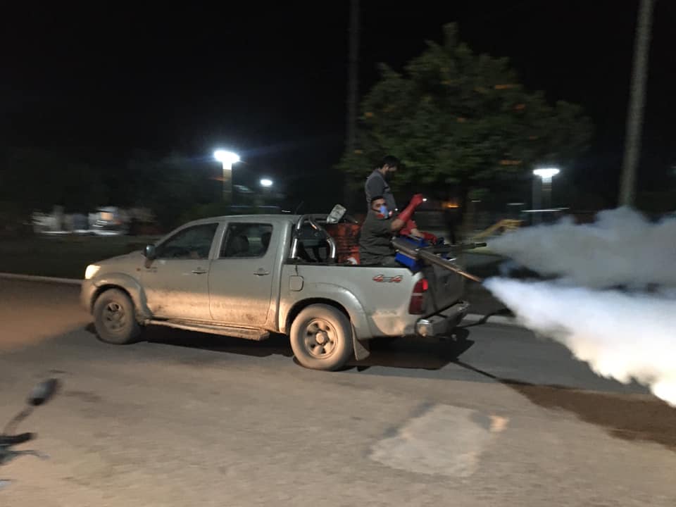 En esta oportunidad la desinfección se realizó en el Barrio Martín Fierro, 1 de Mayo, Héroes de Malvinas y Ofempe.