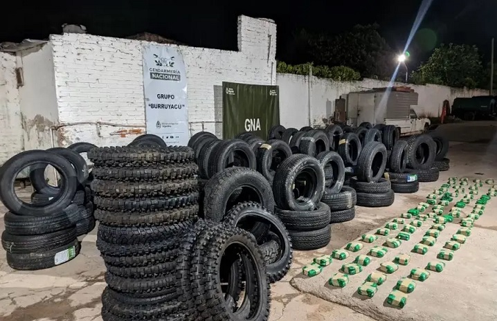 En Las Talitas, hallaron 754 kilos de hojas de coca en estado natural, valuada en $12.350.513 y 136 neumáticos, con valor monetario estimado en $2.545.655.