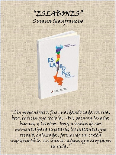 “Sin proponérselo fue guardando cada sonrisa, beso, caricia que recibía. Así pasaron los años buenos y los otros. Hoy necesita de esos momentos para sujetarse; los instantes que recogió, enlazados formando un sostén indestructible. La única cadena que acepta en la vida” (Susana Gianfrancisco).