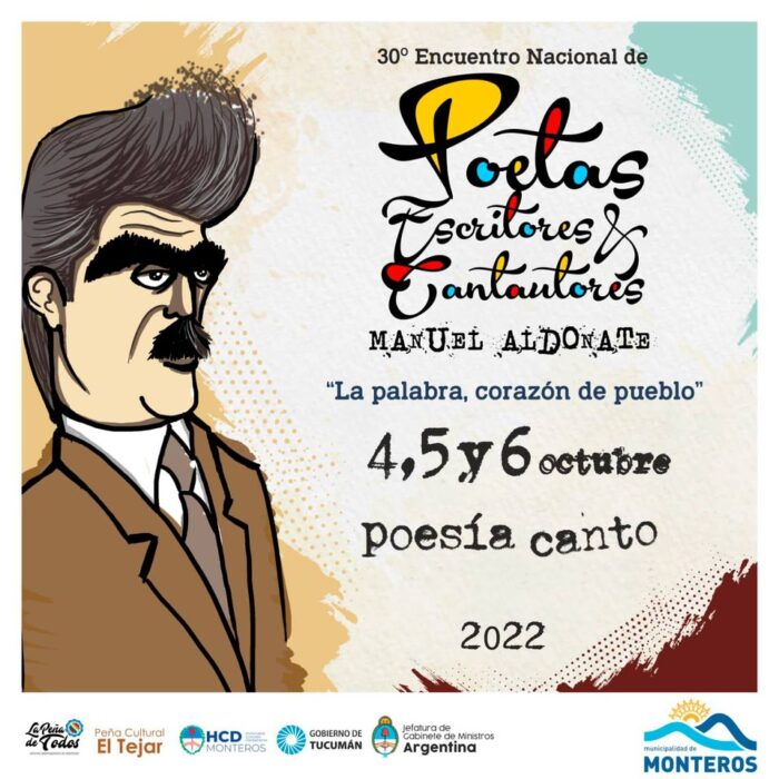 La edición número 30 del Encuentro Nacional de poetas, escritores y cantautores “Manuel Aldonate”, que se desarrollará en Monteros entre mañana y el jueves, representa una cita mayor con la cultura. Organiza Peña Cultural “El Tejar” y auspicia la Municipalidad de Monteros.