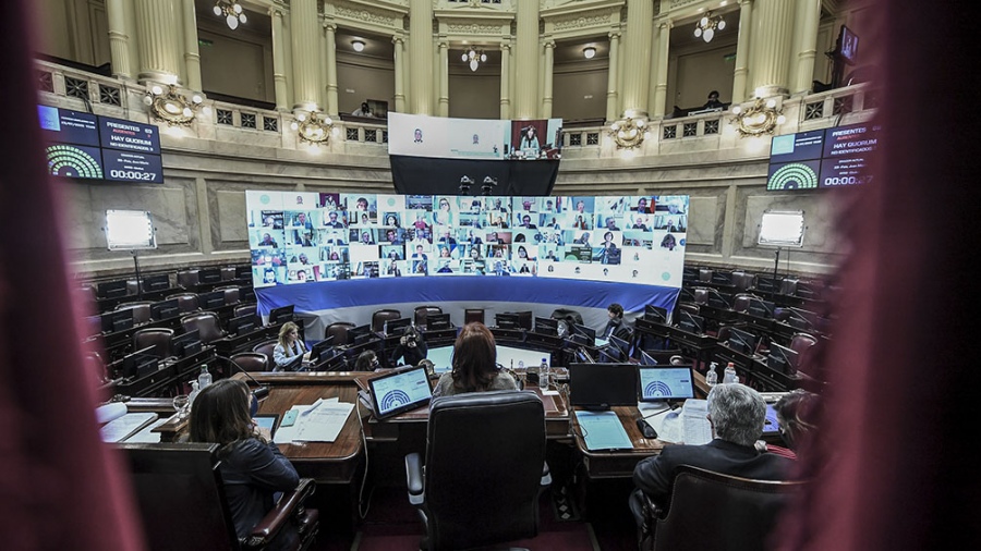 Cuatro legisladores que cumplen roles como autoridades de Cámara acompañan a la vicepresidenta en el recinto desde sus bancas (Claudia Ledesma y Maurice Closs, del Frente de Todos, y Martín Lousteau y Laura Rodríguez Machado, de Cambiemos) mientras que otros 66 senadores están conectados de manera remota.