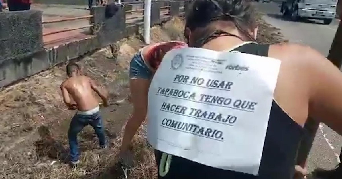 Según la narración del video, las personas habían sido sorprendidas en el centro de Josecito circulando sin el tapaboca obligatorio, aunque el castigo no figura en ninguna orden municipal ni ley nacional.